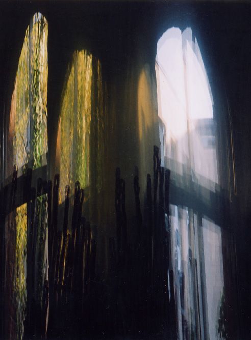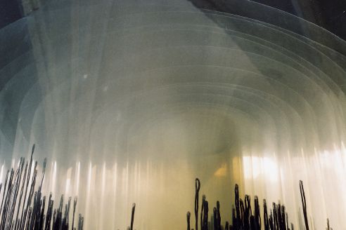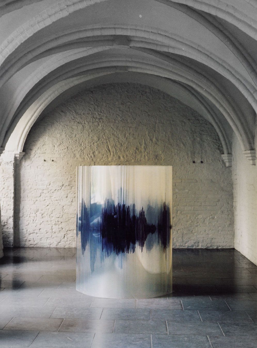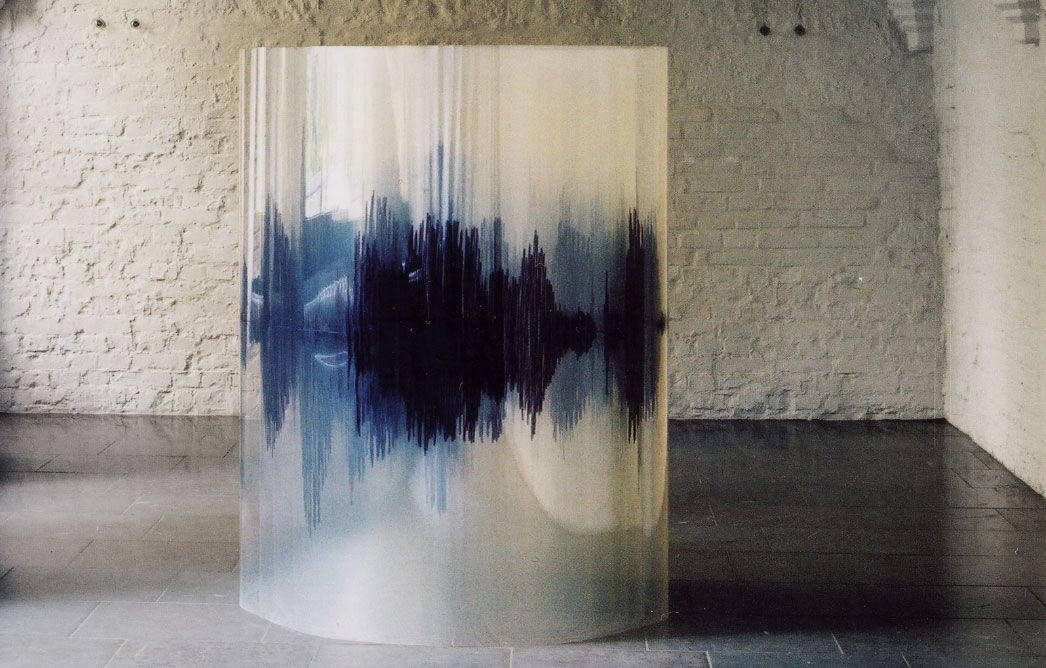 Das Vaterunser ist als Phonokalligrafie auf transparente Folie geschrieben. Zur Spirale im Raum aufgestellt, bildet es einen transparenten, geschlossenen Körper.