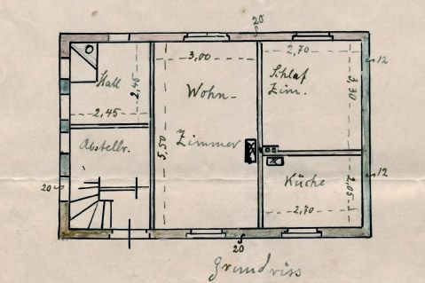 Grundriss eines halben Doppelhauses der Stadtrandsiedlung Biesdorf Nord | 1932 | aus dem Besitz der Familie Klotzek | Archiv Siedlergemeinschaft Biesdorf-Nord