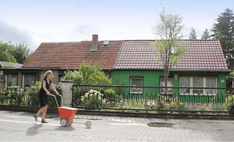 Die ehemaligen Erwerbslosen-Siedlungen sind auf dem Berliner Stadtplan schwer zu finden, sie verschwinden in der voranschreitenden Zersiedelung der Randgebiete. Wir haben uns auf Spurensuche begeben. Die Doppelhäuser sind erhalten. Sie wurden ausgebaut, aufgebaut, umgebaut, dem jeweiligen Zeitgeschmack entsprechend angepasst, gestrichen und verkleidet. Geschmack und Ästhetik der Besitzer*innen und der Zeit formen ihr heutiges Aussehen. 1993 wurde das Gesetz, das die Erbbauheimstätten mit sozialer Bindung schützte, aufgehoben.